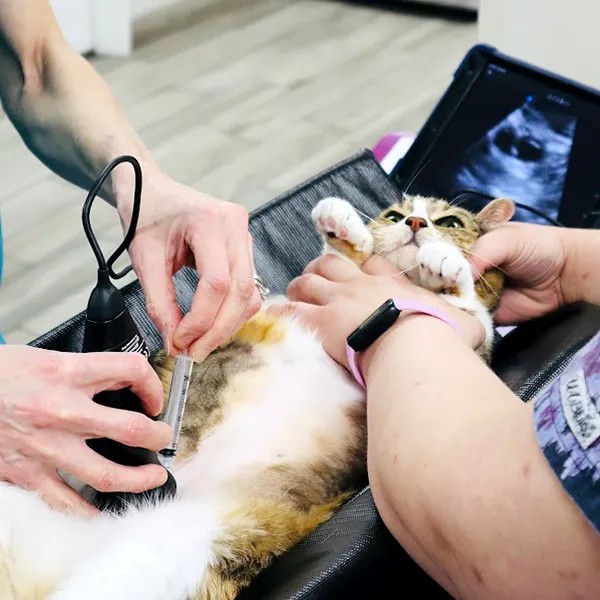 We offer in-house ultrasound for cats to help evaluate internal organs, identify abnormalities, and guide treatment plans. This non-invasive imaging tool is especially helpful for diagnosing conditions involving the abdomen, chest, or bladder. If more advanced feline ultrasound imaging is needed, we utilize the services of a board-certified radiologist.